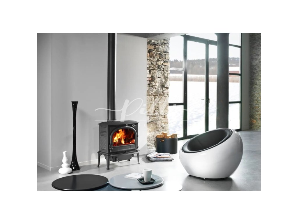 Velice prostorná kamna s topeništěm, které pojme polena dlouhá až 50 cm. Jsou vyrobena v černém laku a kromě elegantních linií jsou nejvýraznějším prvkem také prostorná dvířka, která poskytnou dokonalý pohled na oheň. Topeniště je vybaveno samostatnými dvířky, díky nimž je vybírání popela jednoduchou záležitostí, praktický límec zase zachytí jiskry a uhlíky. Jsou perfektním doplňkem nejen pro Váš dům, ale také moderní chatu nebo bungalov.